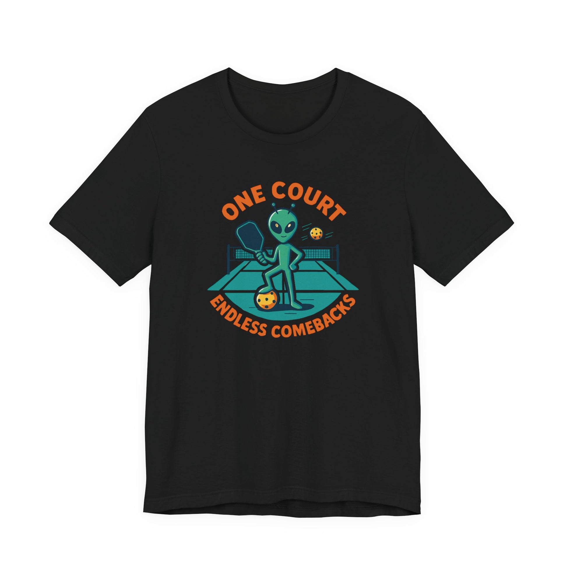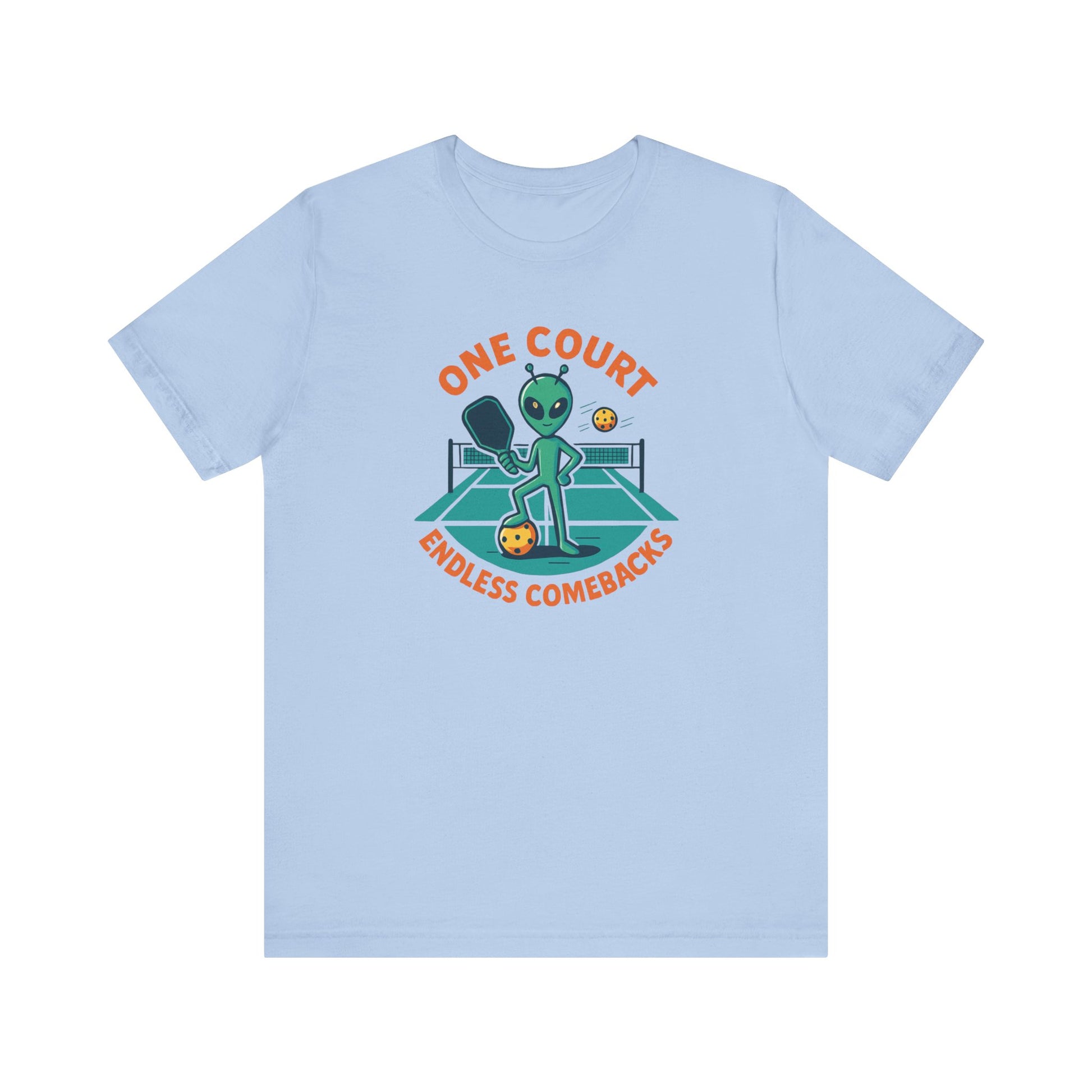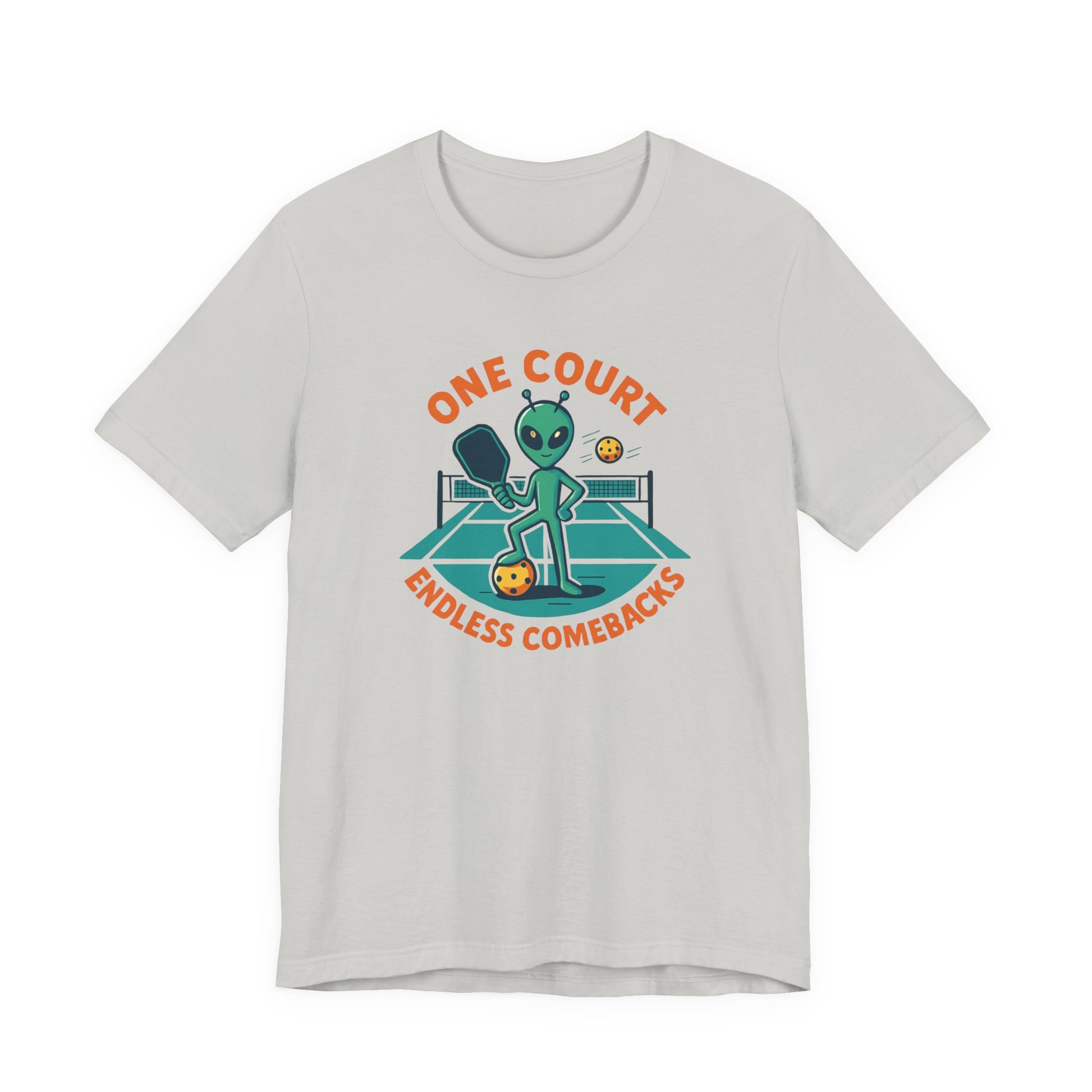 Step up your game — and your style — with the “One Court, Endless Comebacks” Alien Pickleball Tee.